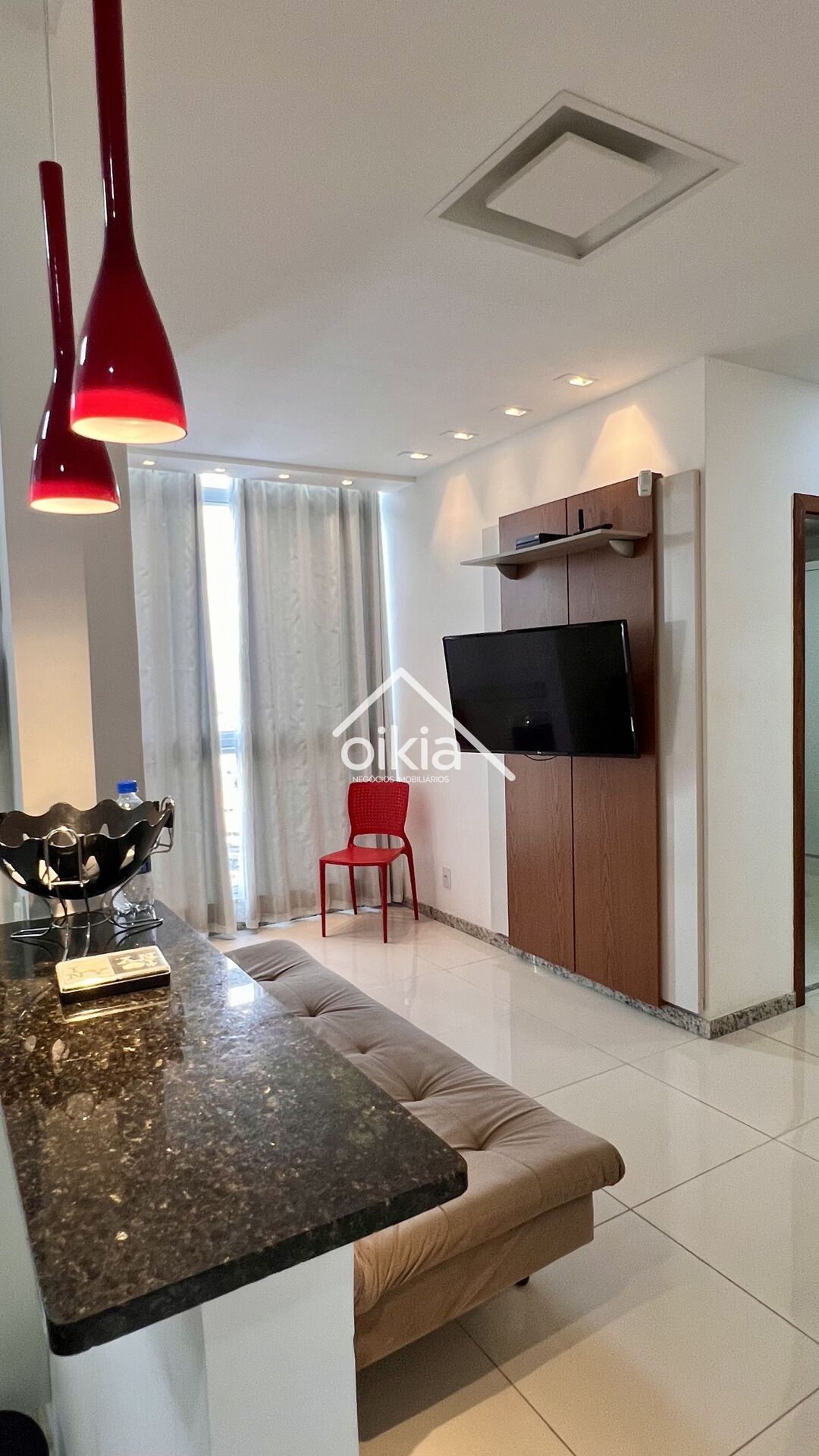 2 Dormitórios, sendo 1 suíte1 Banheiro1 Vaga1 Sala de TV1 Cozinha