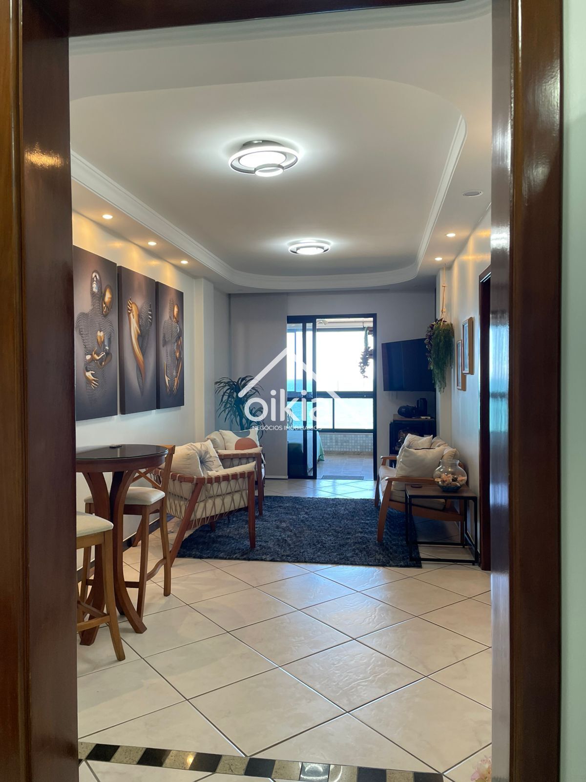 - Sala ampla integrada à varanda com vista frontal para o mar